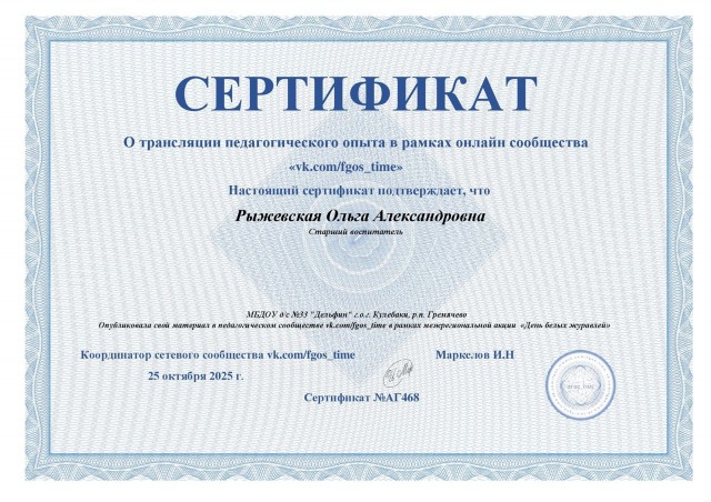 - Участник 12-ти конференций Большого фестиваля дошкольного образования "Воспитатели России"